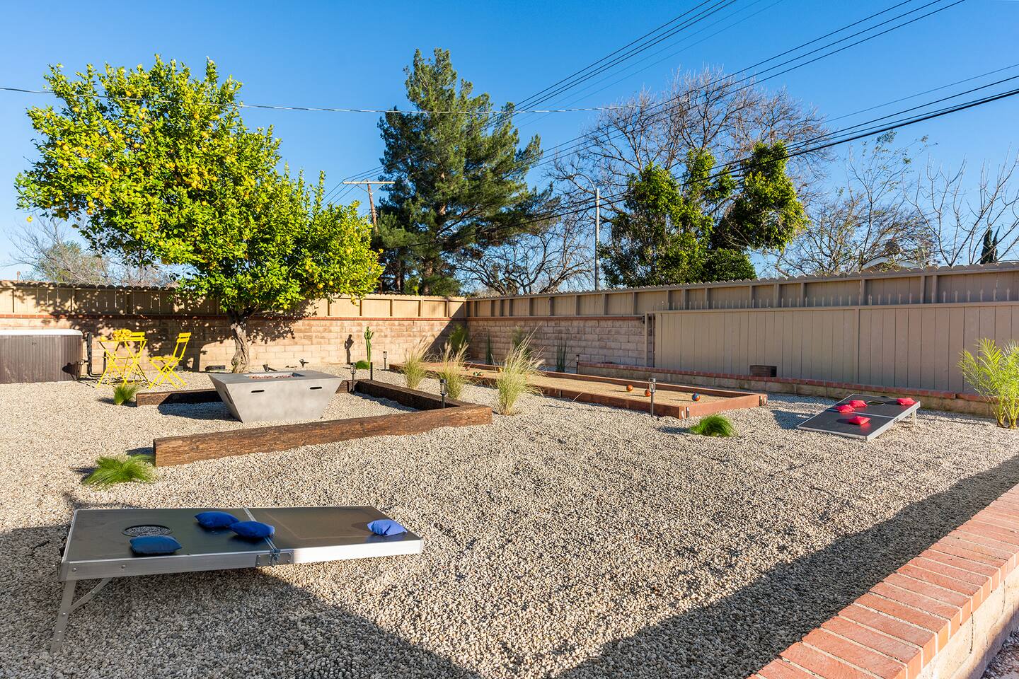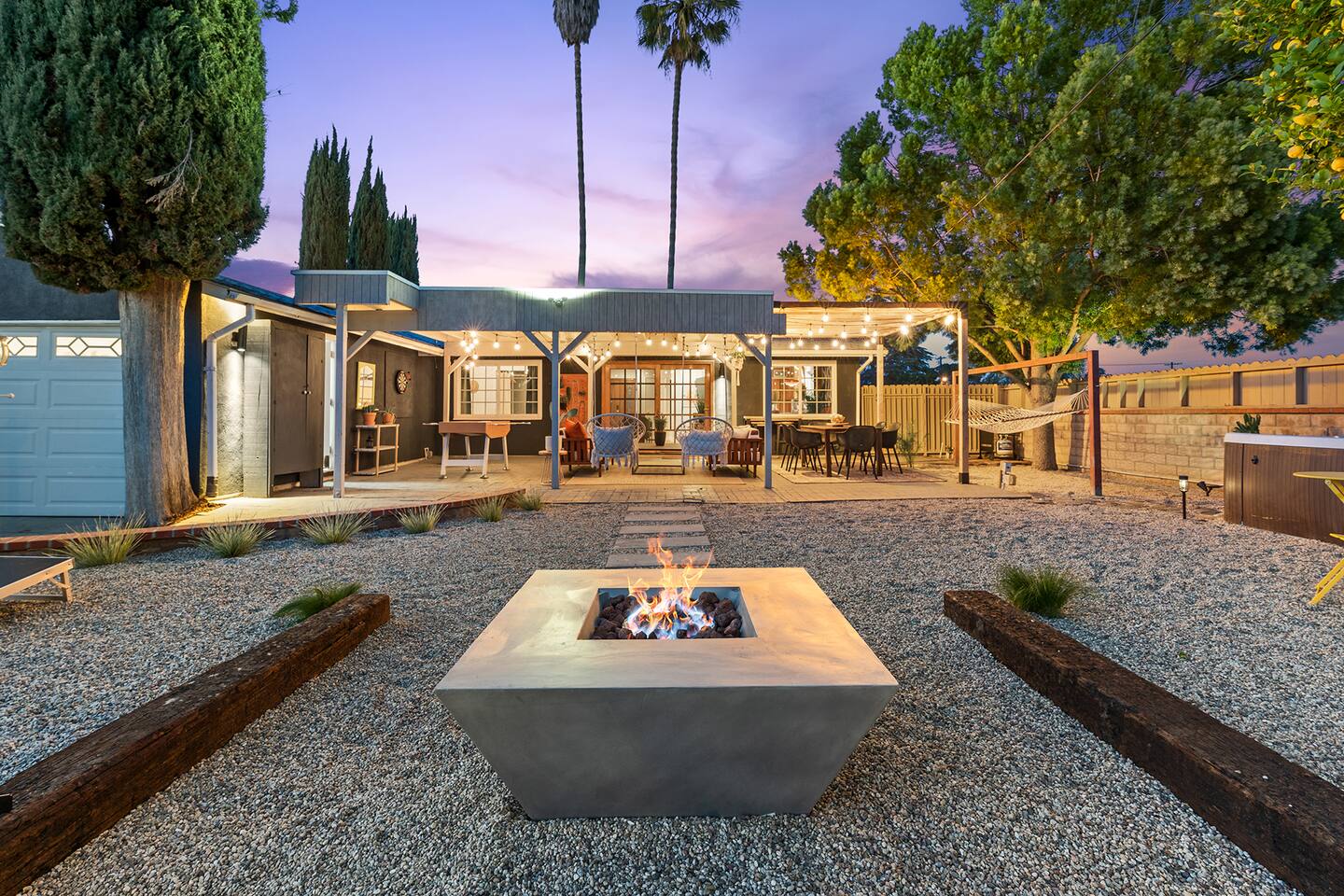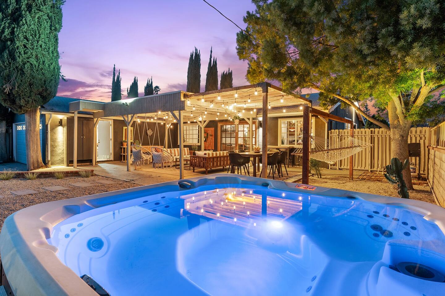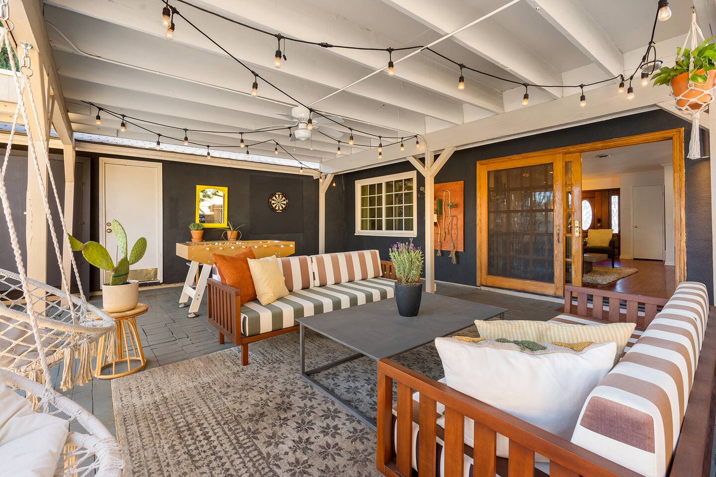 House of Lemons offers a refreshing blend of comfort and style, perfect for both leisure and work stays. Here's what our guests can expect in each carefully crafted space: ★ BEDS & BATHS ★ Master Bedroom: A peaceful retreat featuring a memory foam king bed, private patio access, and a sunlit office nook with all you need for remote work. Second Bedroom: Comfort awaits with a queen bed set in a room designed for rest. Third Bedroom/Office: A flexible space housing a Poly & Bark queen sleeper sofa, doubling as a productive office area when needed. Bathrooms: 1 full bath and one 1/2 bath, including all essentials for your comfort and convenience. ★ KITCHEN & DINING ★ A culinary haven with electric stovetop and all essential appliances, this kitchen invites guests to cook, dine, and gather. Savor your creations indoors or take the feast outside for an alfresco experience in the lemon-scented air. ★ LIVING ROOM ★ The living room, with its 75" TV and plush seating, is the hub of relaxation. It's an inviting space for guests to come together for movies, games, or quiet evenings. ★ OUTDOOR ★ Embrace the California lifestyle in our expansive backyard, where you'll find a hot tub, hammock for lounging, and a variety of games including cornhole and a bocce ball court. Enjoy the charm of the mature lemon tree, adding a zest to your outdoor enjoyment. ★ ENTERTAINMENT ★ Stay entertained with our indoor game room featuring foosball, darts, and more, or venture outside for some bocce or cornhole under the sun. ★ GARAGE & PARKING ★ The property includes a private garage with an a 50 amp outlet for EV charging (bring your own cord), making parking and recharging simple and convenient. ★ CLIMATE CONTROL ★ AC/Heating through a Nest thermostat in the living room. Each room is equipped with climate control to ensure your comfort no matter the season. ★ WORK-FRIENDLY ★ 1 Gbit Wi-Fi and a dedicated office – staying productive is as breezy as the California air. ★ FAMILY FEATURES ★ House of Lemons is ready to welcome the entire family with games and spaces designed for guests of all ages to enjoy. Experience the zest of life at House of Lemons, where every detail is curated for an unforgettable stay. Permit #: HSR23-004253