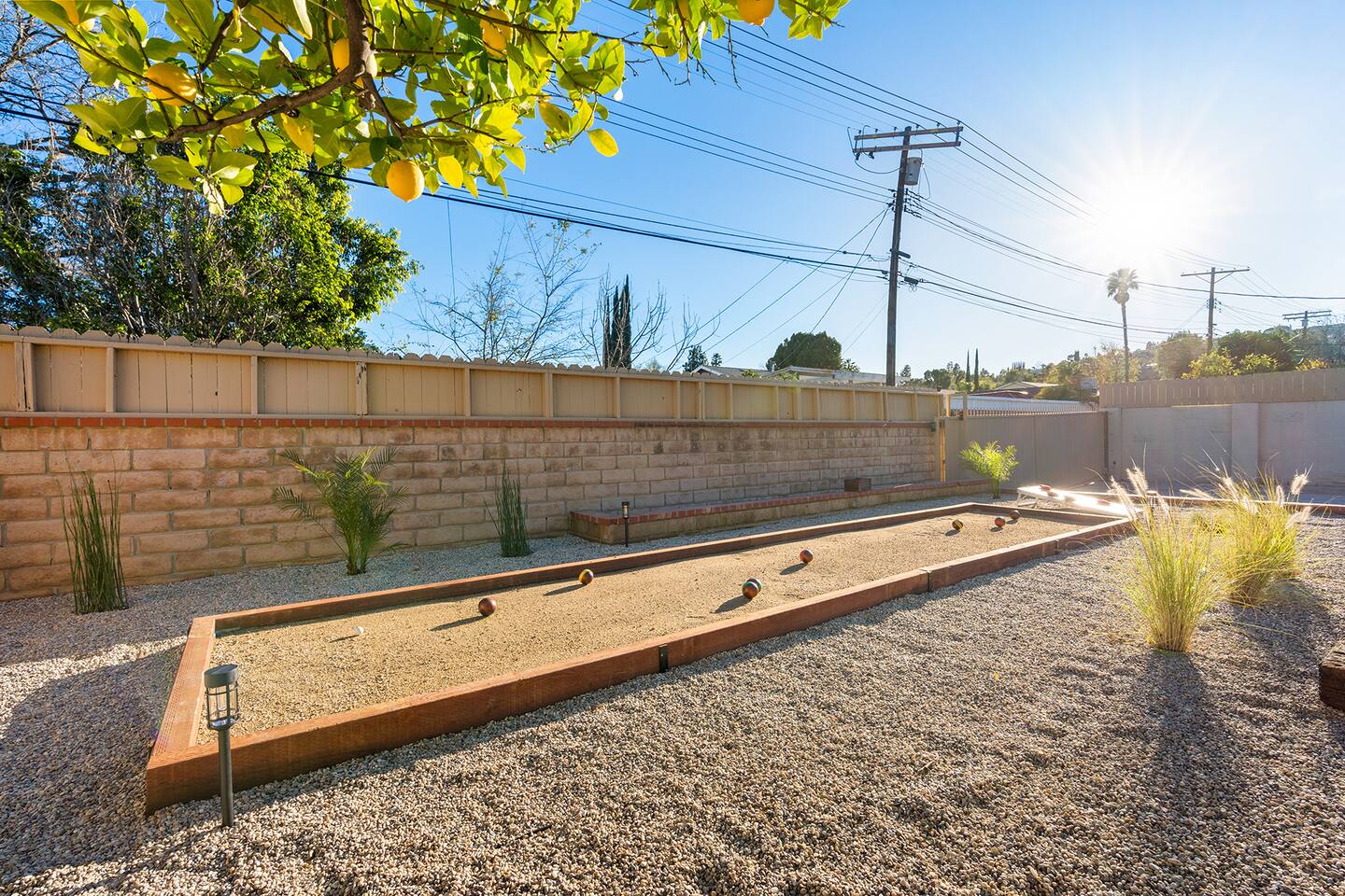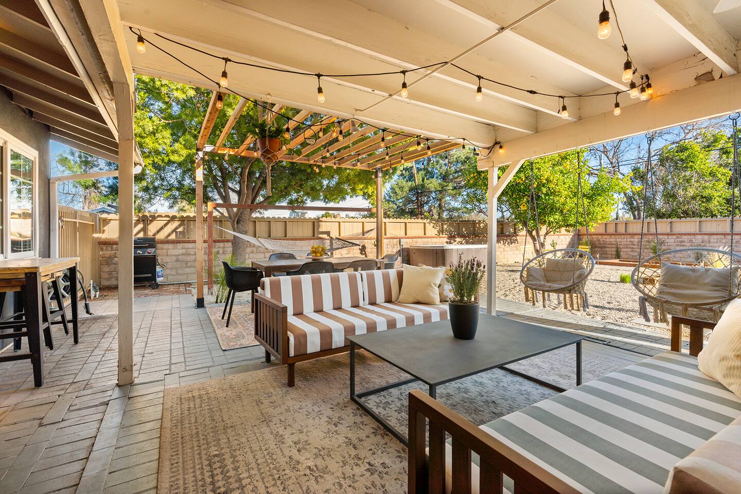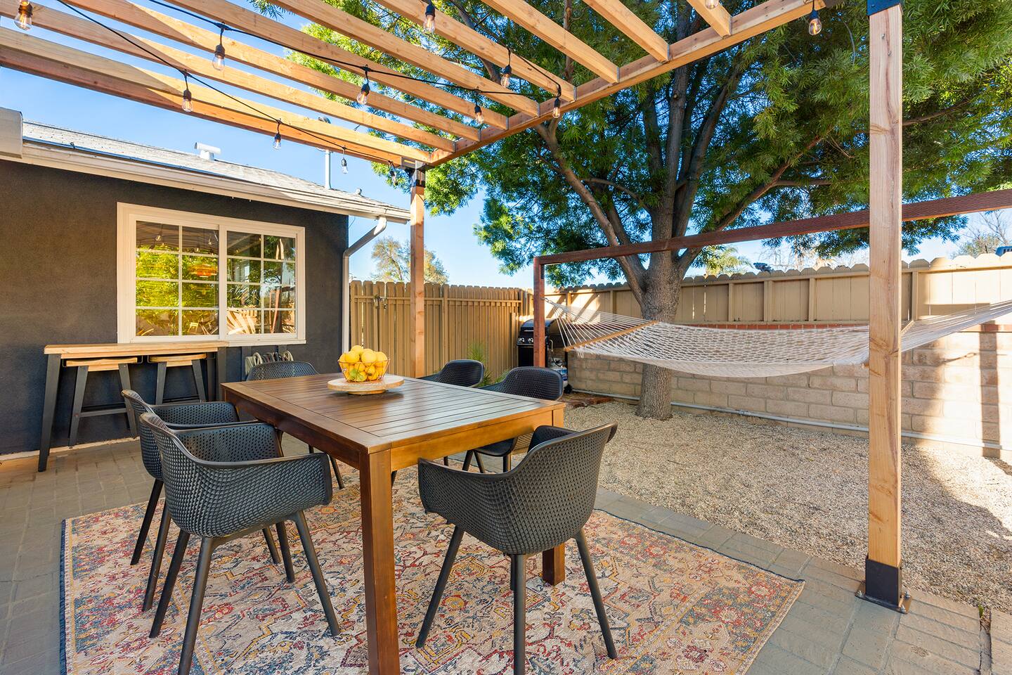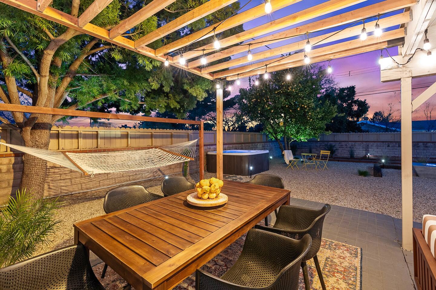 House of Lemons offers a refreshing blend of comfort and style, perfect for both leisure and work stays. Here's what our guests can expect in each carefully crafted space: ★ BEDS & BATHS ★ Master Bedroom: A peaceful retreat featuring a memory foam king bed, private patio access, and a sunlit office nook with all you need for remote work. Second Bedroom: Comfort awaits with a queen bed set in a room designed for rest. Third Bedroom/Office: A flexible space housing a Poly & Bark queen sleeper sofa, doubling as a productive office area when needed. Bathrooms: 1 full bath and one 1/2 bath, including all essentials for your comfort and convenience. ★ KITCHEN & DINING ★ A culinary haven with electric stovetop and all essential appliances, this kitchen invites guests to cook, dine, and gather. Savor your creations indoors or take the feast outside for an alfresco experience in the lemon-scented air. ★ LIVING ROOM ★ The living room, with its 75" TV and plush seating, is the hub of relaxation. It's an inviting space for guests to come together for movies, games, or quiet evenings. ★ OUTDOOR ★ Embrace the California lifestyle in our expansive backyard, where you'll find a hot tub, hammock for lounging, and a variety of games including cornhole and a bocce ball court. Enjoy the charm of the mature lemon tree, adding a zest to your outdoor enjoyment. ★ ENTERTAINMENT ★ Stay entertained with our indoor game room featuring foosball, darts, and more, or venture outside for some bocce or cornhole under the sun. ★ GARAGE & PARKING ★ The property includes a private garage with an a 50 amp outlet for EV charging (bring your own cord), making parking and recharging simple and convenient. ★ CLIMATE CONTROL ★ AC/Heating through a Nest thermostat in the living room. Each room is equipped with climate control to ensure your comfort no matter the season. ★ WORK-FRIENDLY ★ 1 Gbit Wi-Fi and a dedicated office – staying productive is as breezy as the California air. ★ FAMILY FEATURES ★ House of Lemons is ready to welcome the entire family with games and spaces designed for guests of all ages to enjoy. Experience the zest of life at House of Lemons, where every detail is curated for an unforgettable stay. Permit #: HSR23-004253