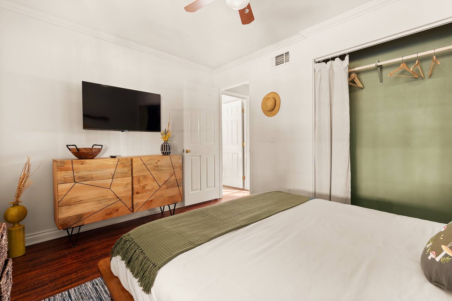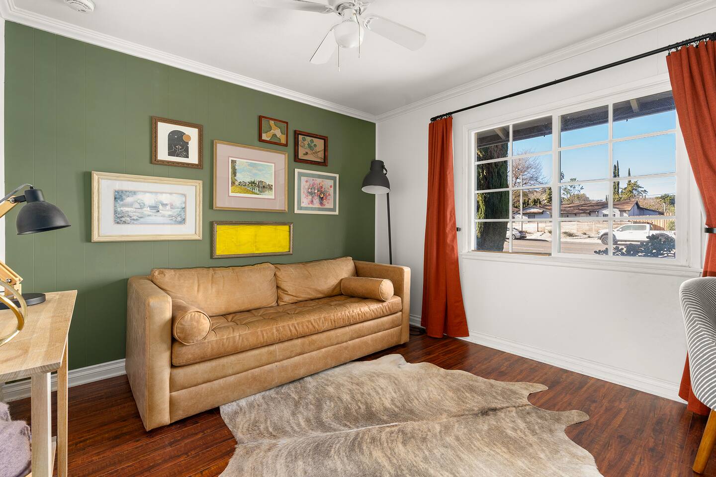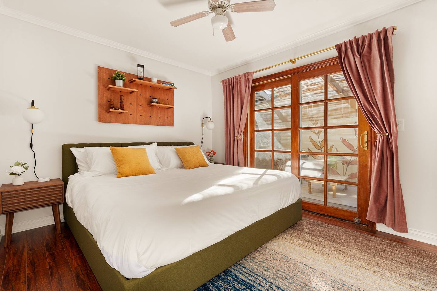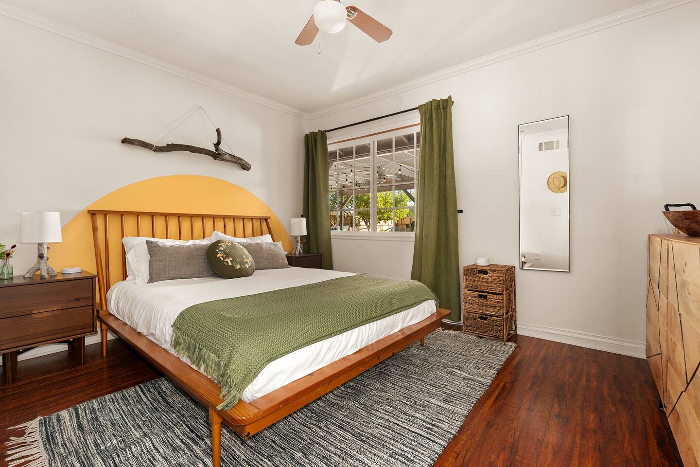 House of Lemons offers a refreshing blend of comfort and style, perfect for both leisure and work stays. Here's what our guests can expect in each carefully crafted space: ★ BEDS & BATHS ★ Master Bedroom: A peaceful retreat featuring a memory foam king bed, private patio access, and a sunlit office nook with all you need for remote work. Second Bedroom: Comfort awaits with a queen bed set in a room designed for rest. Third Bedroom/Office: A flexible space housing a Poly & Bark queen sleeper sofa, doubling as a productive office area when needed. Bathrooms: 1 full bath and one 1/2 bath, including all essentials for your comfort and convenience. ★ KITCHEN & DINING ★ A culinary haven with electric stovetop and all essential appliances, this kitchen invites guests to cook, dine, and gather. Savor your creations indoors or take the feast outside for an alfresco experience in the lemon-scented air. ★ LIVING ROOM ★ The living room, with its 75" TV and plush seating, is the hub of relaxation. It's an inviting space for guests to come together for movies, games, or quiet evenings. ★ OUTDOOR ★ Embrace the California lifestyle in our expansive backyard, where you'll find a hot tub, hammock for lounging, and a variety of games including cornhole and a bocce ball court. Enjoy the charm of the mature lemon tree, adding a zest to your outdoor enjoyment. ★ ENTERTAINMENT ★ Stay entertained with our indoor game room featuring foosball, darts, and more, or venture outside for some bocce or cornhole under the sun. ★ GARAGE & PARKING ★ The property includes a private garage with an a 50 amp outlet for EV charging (bring your own cord), making parking and recharging simple and convenient. ★ CLIMATE CONTROL ★ AC/Heating through a Nest thermostat in the living room. Each room is equipped with climate control to ensure your comfort no matter the season. ★ WORK-FRIENDLY ★ 1 Gbit Wi-Fi and a dedicated office – staying productive is as breezy as the California air. ★ FAMILY FEATURES ★ House of Lemons is ready to welcome the entire family with games and spaces designed for guests of all ages to enjoy. Experience the zest of life at House of Lemons, where every detail is curated for an unforgettable stay. Permit #: HSR23-004253