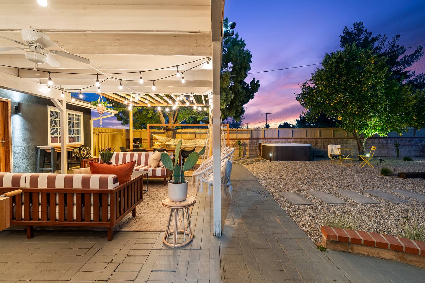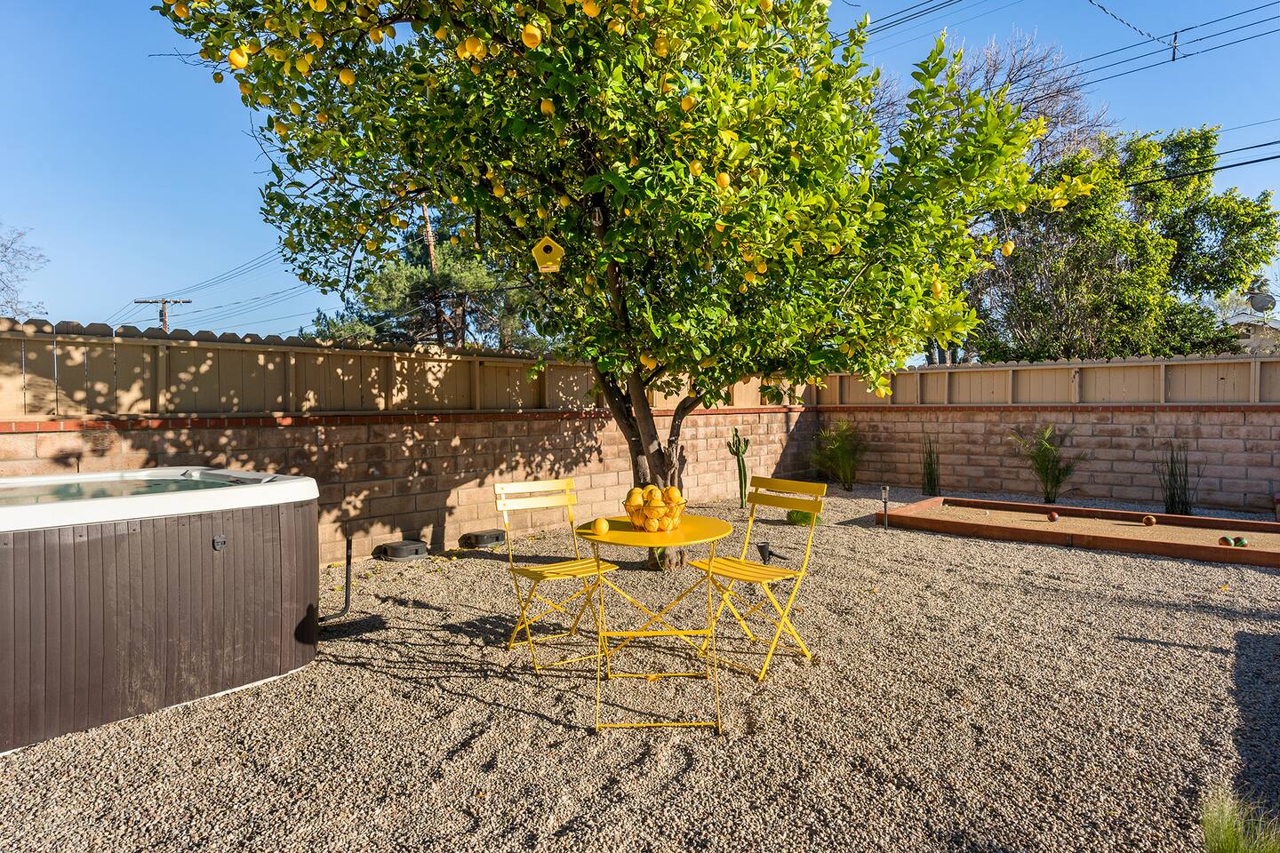 Welcome to House of Lemons – a cozy 3-bdrm home near shopping, hospitals, and nature, offering a blend of indoor comfort and outdoor entertainment: ★ Fully equipped kitchen ★ Outdoor patio w/ dining table, sofa group, foosball, and swinging chairs ★ Backyard w/ hot tub, bocce ball, bistro set, fire pit, corn hole, hammock, and beautiful lemon tree ★ Garage w/ EV-ready outlet ★ Memory foam king in master bedroom ★ Office w/ & 32" high-res monitor + speakers ★ 75" living room TV w/ Apple TV