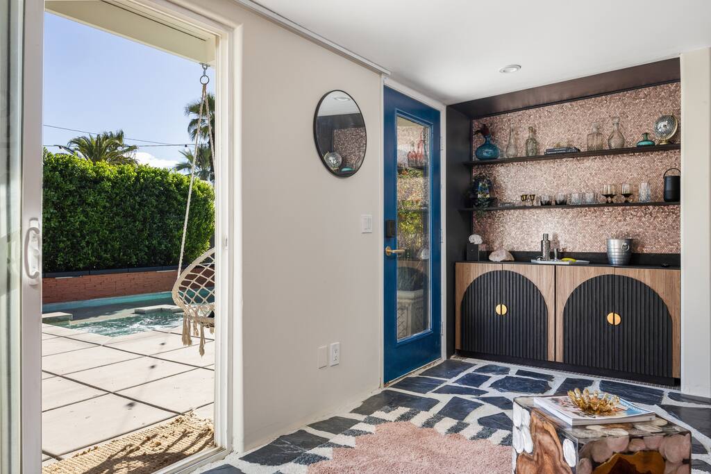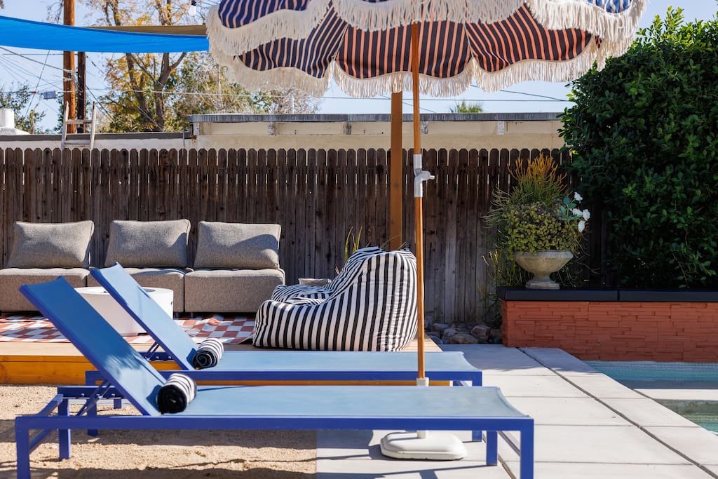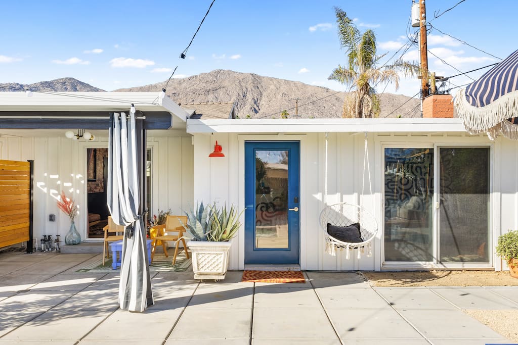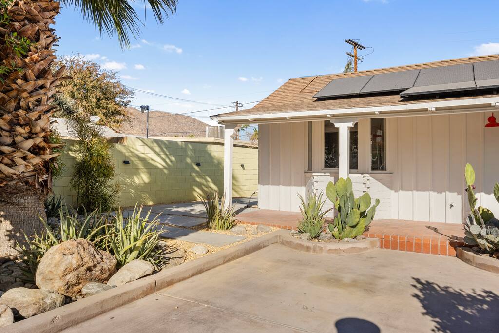 ★ BEDROOM & BATHROOM ★ Step into the heart of your retreat through a secret bookcase door in the kitchen, leading to a stunning master bedroom. Designed with comfort and style in mind, this spacious room sleeps up to two guests in a luxurious king bed. An open closet provides ample clothing storage, and you'll find an iron and ironing board for your convenience. The ensuite bathroom feels like a private spa, completely renovated with a stylish dual-head shower. Essentials such as soaps, shampoo, conditioner, a hair dryer, and luxe bath towels are thoughtfully provided, making it easy to relax and refresh in this serene space. Note: The fireplace shown in the photos is not for guest use and has been disabled for safety purposes. ★ KITCHEN & DINING ★ The fully-equipped kitchen is a chef’s dream, blending sleek modern design with practicality. It features brand-new appliances, including a gas stove, a combined Miele oven/microwave, and a dishwasher. Whether you’re brewing coffee with the Keurig, crafting the perfect pour-over with the Chemex and Fellow grinder, or preparing a meal with top-quality pots, pans, and spices, this kitchen ensures every culinary need is met. Dine indoors at the large custom-built tiled island, a striking centerpiece that invites conversation and relaxation. For a change of scenery, step outside to the charming cafe table on the patio and enjoy your meal under the desert sky. ★ LIVING ROOM ★ Your journey begins in the living room, a space that effortlessly combines style and comfort. From the custom-made bar area to the unique vintage coffee tables, every piece adds character. The room flows naturally into the outdoor patio through sliding glass doors, creating an airy, open atmosphere. Relax on the large sofa, catch up on your favorite shows with the smart TV, or simply take in the desert-inspired design, complete with custom flagstone flooring. Please note that the furniture is fixed to preserve the delicate floor and enhance the space’s curated look. ★ PATIOS & OUTDOOR SPACES ★ Step outside to your private desert oasis. Your dedicated patio is an intimate space designed for relaxation, complete with a propane firepit, comfortable lounge seating, and sun loungers shaded by umbrellas. String lights and an outdoor swing add a magical touch, making this patio perfect for day or evening use. The patio connects to the kitchen’s outdoor dining area, creating a seamless flow between spaces. Just steps away, you’ll find the hot tub and pool, ideal for cooling off under the sun or unwinding in the warm water. Although these amenities are shared with us, the owners, privacy walls and curtains maintain an exclusive feel. While you may occasionally see us, we’re committed to giving you a peaceful, uninterrupted experience. Note: Landscapers are onsite every other Wednesday morning 8am - 9am. And 1x per quarter there is a pest control vendor onsite. ★ PARKING ★ A single secure, dedicated parking space is reserved for you, complete with a Tesla charger available at no extra cost. * Driveway dimensions: 9’W x 15’L * Some larger vehicles may need to utilize street parking, which is plentiful and free. The driveway is shared with the front unit, but we’re flexible to accommodate your needs. A lockable gate ensures security, and the code will be provided before your arrival. ★ PETS ★ We allow 1 dog max per stay, and they must be added to your reservation and approved in advance. Non-dog pets may be considered on a case-by-case basis—feel free to ask. Please Note: We have a small dog on site. She’s friendly and still in training. If your dog isn’t comfortable around other dogs, this may not be the best fit. Dogs are not allowed in the pool, hot tub, or any owner-designated areas. They must follow city quiet hours, be leashed outdoors, and never be left alone in the house or car without prior approval. Guests are expected to clean up after their pets. Booking confirms agreement to these rules. Violations may result in fines or eviction. ★ PRIVATE ENTRANCE ★ Your stay begins with a private entrance accessed via a paved pathway that wraps around the property. This dedicated walkway, accessible through a locked driveway gate, leads to your back unit. The front door features a keyless entry, and the code will be provided before your check-in. Note: A security camera monitors the driveway area for added safety. ★ HEATING AND COOLING ★ Stay comfortable year-round with central heating and air, controlled by a Smart Nest thermostat. A ceiling fan in the bedroom provides additional cooling options. * Hot tub heating: Included at no extra charge. * Pool heating: Available for $100/night in colder months; please request at least 24 hours before arrival. ★ CITY RULES & QUIET HOURS ★ Palm Springs enforces strict noise ordinances from 10 PM to 10 AM. Outdoor music is actually prohibited at all times in Palm Springs, and violations may result in fines issued directly to guests by the city. * A copy of a government-issued ID and a signed rental ordinance are required before your stay. * We’ll provide a digital link for easy document submission before your check-in. ★ WIFI ★ Enjoy fast fiber-optic Wi-Fi, with the password provided prior to your stay. ★ NEARBY AIRPORTS ★ * Palm Springs (PSP): 5 min * Ontario Intl (ONT): 1 hr 15 min * San Diego (SAN): 2 hrs 30 min * Los Angeles (LAX): 2 hrs 30 min