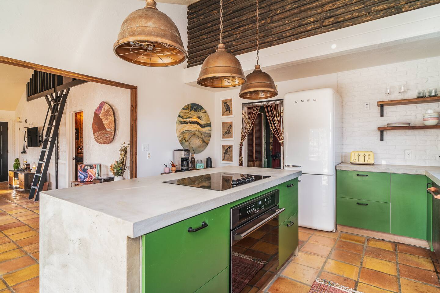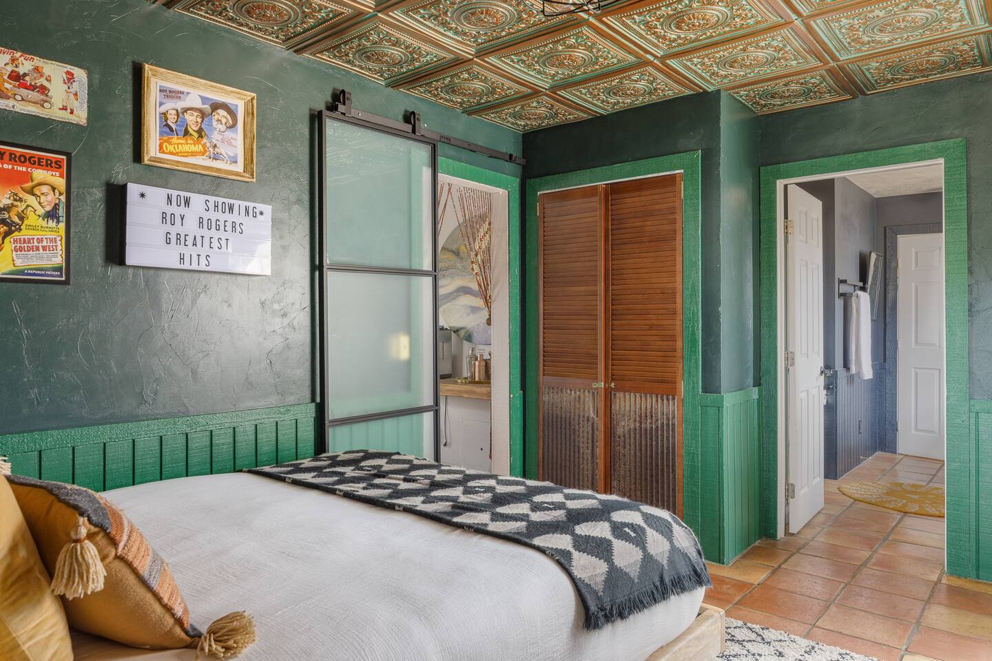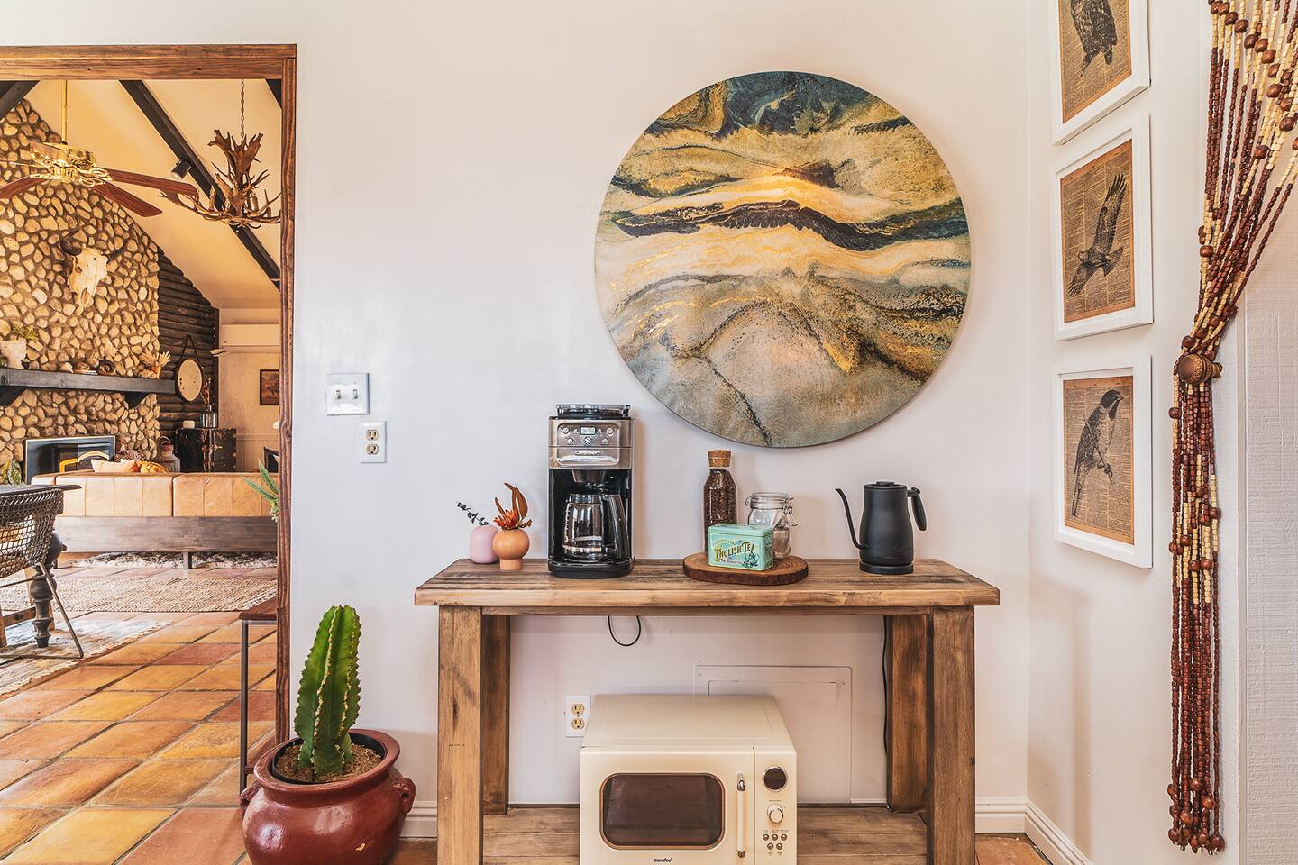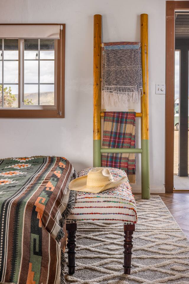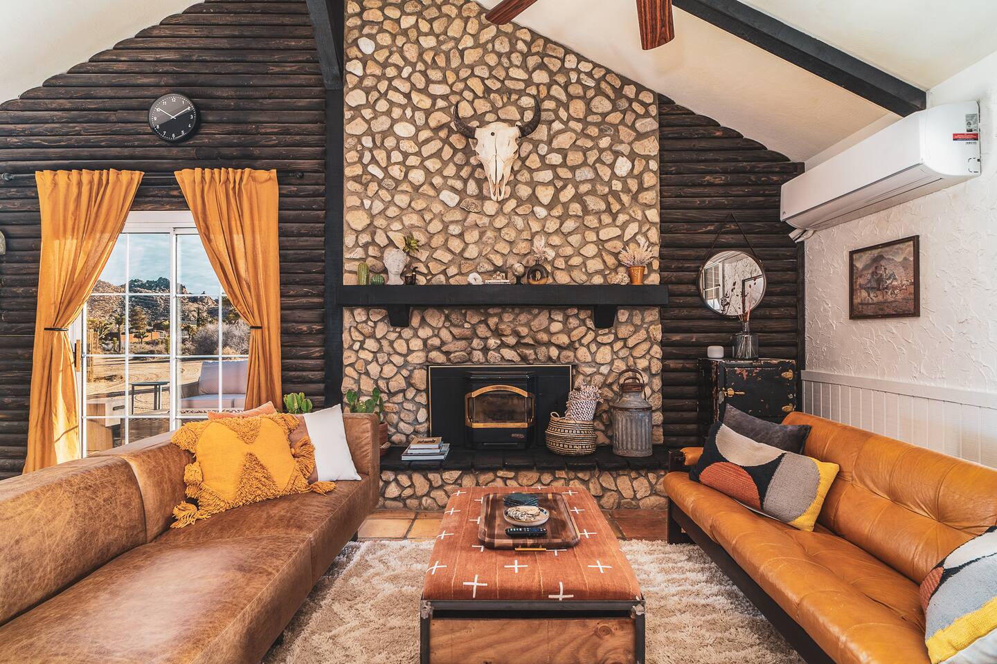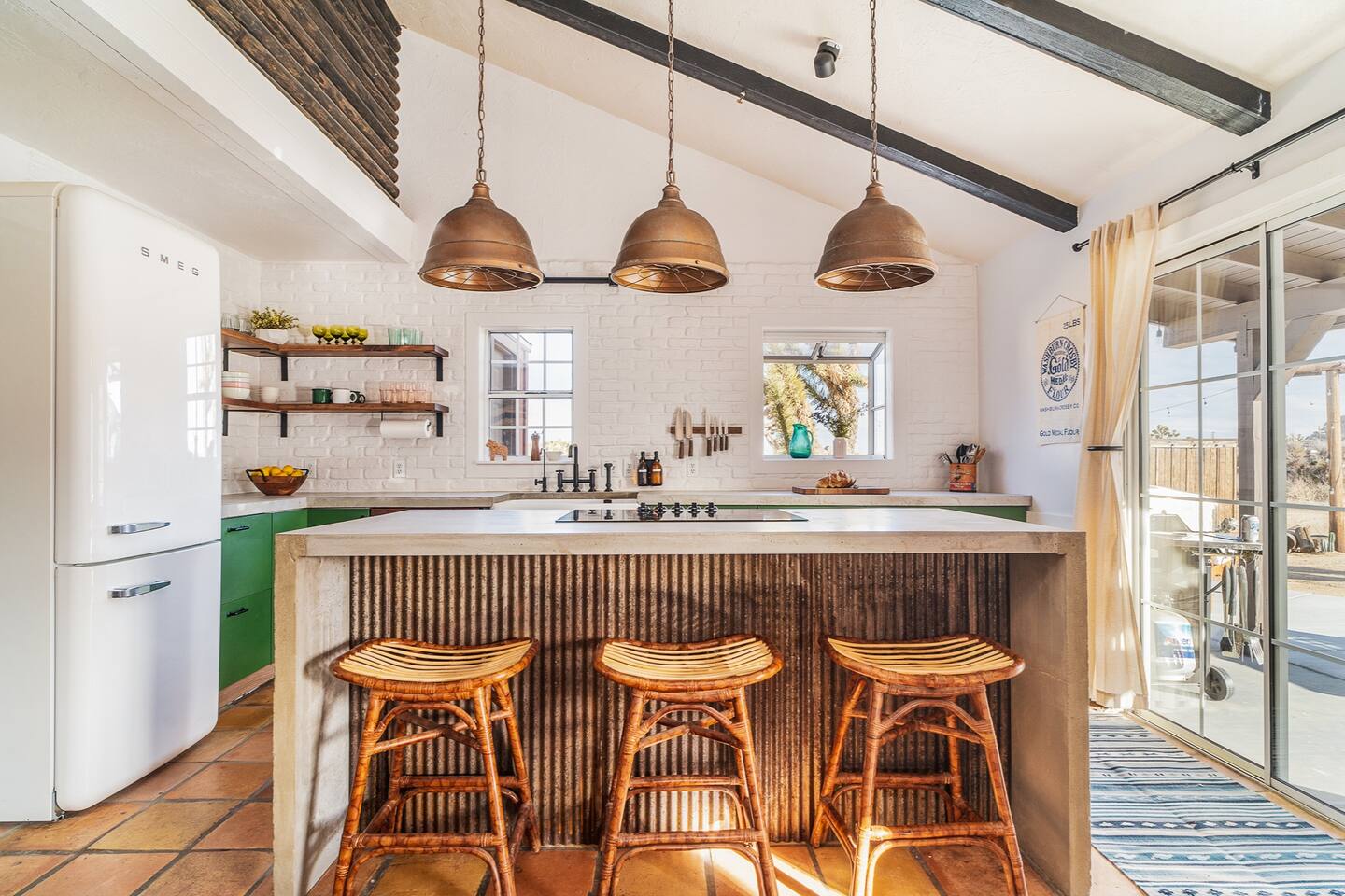 ★ BEDS & BATHS ★ Sleeps 8 across 4 rooms with 4 beds and 3 full bathrooms (2 showers + jacuzzi tub). • Front Bedroom: King bed, Tuft & Needle mattress, tv, two en-suite bathrooms—one with shower and laundry, one with jacuzzi tub. • Master Bedroom: King Casper bed, modular sofa, en-suite bath, and two patios. • Loft: Queen mattress, open space with its own heating/cooling. • Middle bedroom: Queen bed, TV, access to a shared en-suite bathroom. It connects kitchen and master with a privacy door. ★ KITCHEN & DINING ★ Fully stocked kitchen with ceramic glass stove, oven, microwave, dishwasher, drip coffee maker, and DeLonghi pod machine. Dine indoors or outside with views. Propane BBQ included. No range hood—please use the splash guard. ★ LIVING ROOM ★ Airy and open with 16-ft ceilings, two couches, a flatscreen TV, and a cozy lounge nook. Connects to kitchen, front entrance, and patio. ★ THE SALOON ★ Converted horse stable with sectional, bar stools, upright piano, and a desert-facing window bar. Opens to the outdoor deck. ★ OUTDOORS ★ Multiple lounging areas, fenced yard, hammocks, games, hot tub, swing, and a built-in 8-ft cowboy pool (note the stock tank pool is available from Memorial Day - Halloween) ★ PARKING & AMENITIES ★ U-shaped driveway, Tesla charger. 4 mini-splits, pellet stove, and propane fireplace. ★ REMOTE WORK & FAMILY FRIENDLY ★ Fast Wi-Fi, dedicated workstation, pet welcome kit, board games, and outdoor space for kids. ★ FOLLOW US ★ @ houseof.roy | #houseofroy | Tag “House of Roy” Hosted by Viktor & Meghan ★ AIRPORTS ★ PSP – 45 min | LAX & SAN – 2.5 hrs