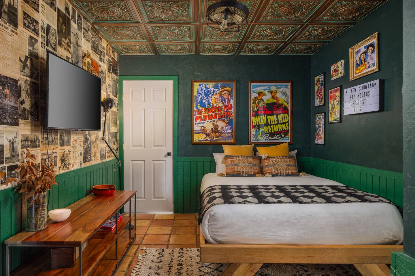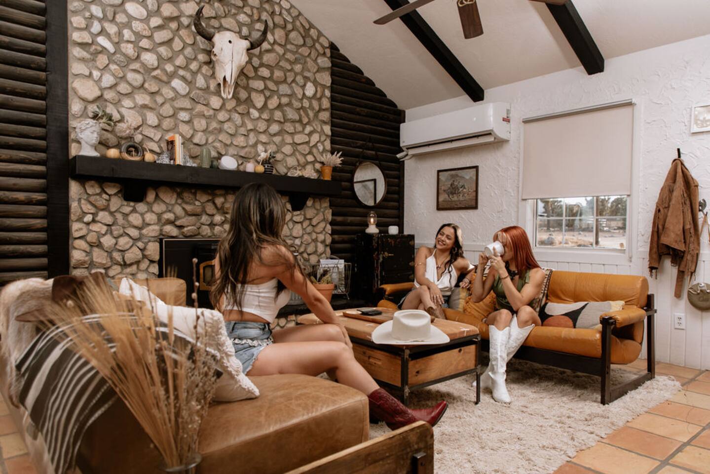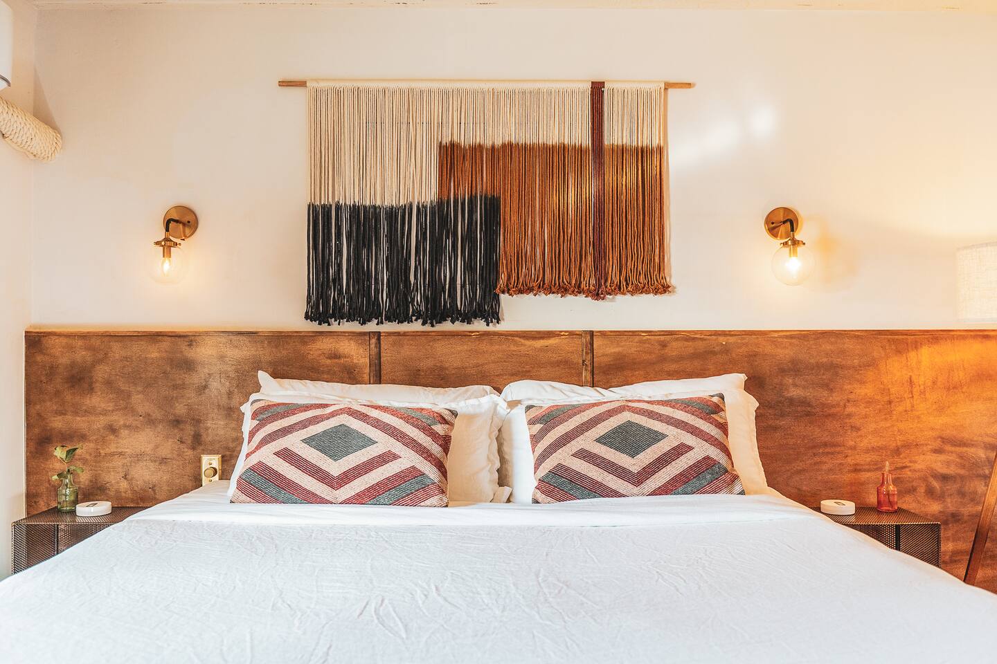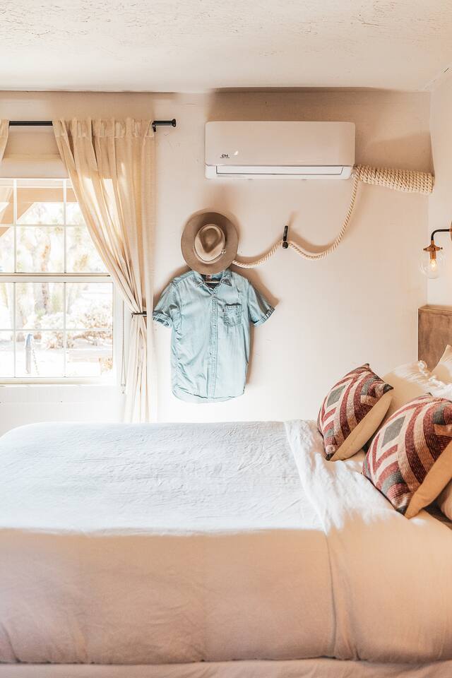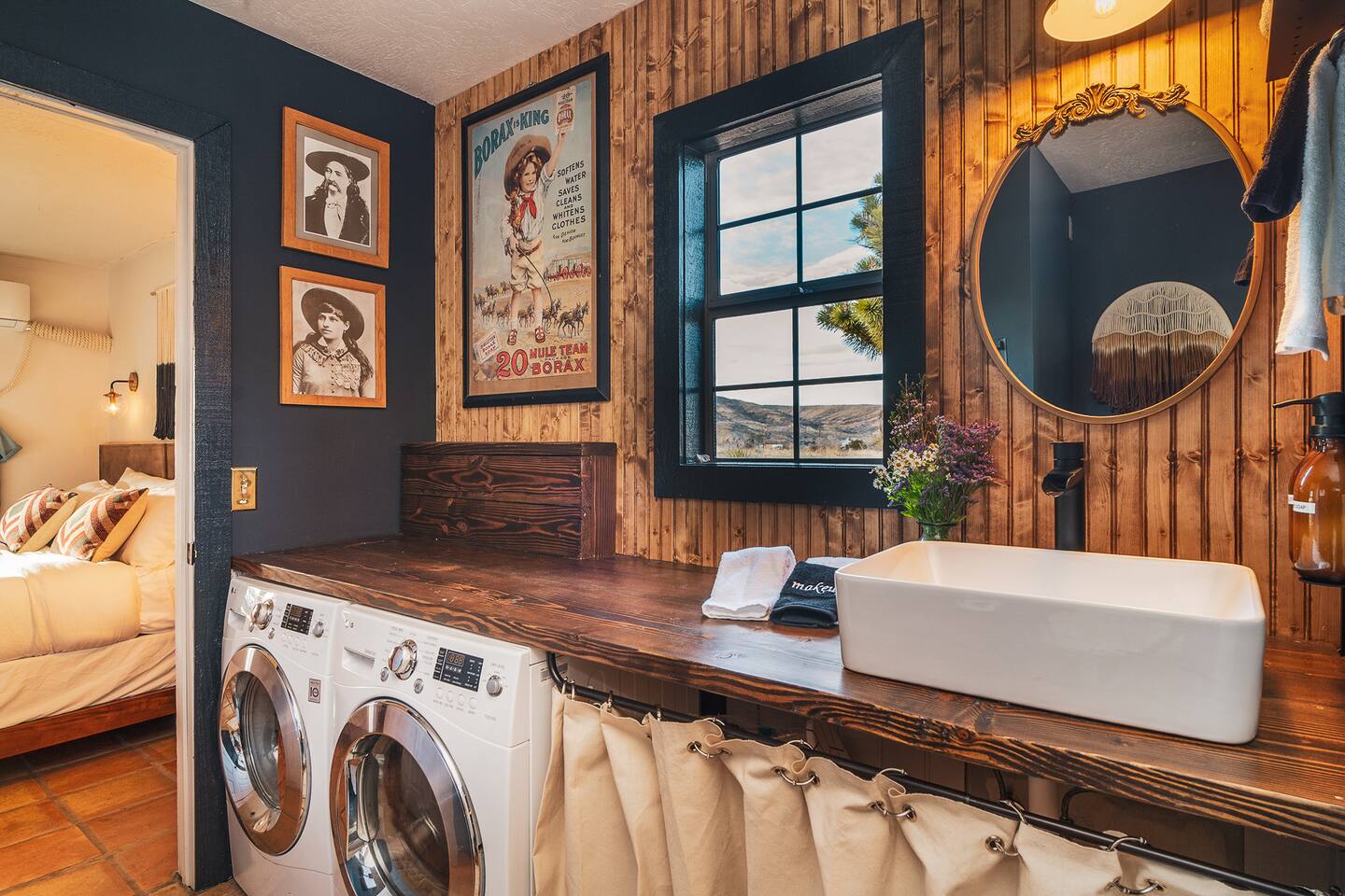 ★ BEDS & BATHS ★ Sleeps 8 across 4 rooms with 4 beds and 3 full bathrooms (2 showers + jacuzzi tub). • Front Bedroom: King bed, Tuft & Needle mattress, tv, two en-suite bathrooms—one with shower and laundry, one with jacuzzi tub. • Master Bedroom: King Casper bed, modular sofa, en-suite bath, and two patios. • Loft: Queen mattress, open space with its own heating/cooling. • Middle bedroom: Queen bed, TV, access to a shared en-suite bathroom. It connects kitchen and master with a privacy door. ★ KITCHEN & DINING ★ Fully stocked kitchen with ceramic glass stove, oven, microwave, dishwasher, drip coffee maker, and DeLonghi pod machine. Dine indoors or outside with views. Propane BBQ included. No range hood—please use the splash guard. ★ LIVING ROOM ★ Airy and open with 16-ft ceilings, two couches, a flatscreen TV, and a cozy lounge nook. Connects to kitchen, front entrance, and patio. ★ THE SALOON ★ Converted horse stable with sectional, bar stools, upright piano, and a desert-facing window bar. Opens to the outdoor deck. ★ OUTDOORS ★ Multiple lounging areas, fenced yard, hammocks, games, hot tub, swing, and a built-in 8-ft cowboy pool (note the stock tank pool is available from Memorial Day - Halloween) ★ PARKING & AMENITIES ★ U-shaped driveway, Tesla charger. 4 mini-splits, pellet stove, and propane fireplace. ★ REMOTE WORK & FAMILY FRIENDLY ★ Fast Wi-Fi, dedicated workstation, pet welcome kit, board games, and outdoor space for kids. ★ FOLLOW US ★ @ houseof.roy | #houseofroy | Tag “House of Roy” Hosted by Viktor & Meghan ★ AIRPORTS ★ PSP – 45 min | LAX & SAN – 2.5 hrs