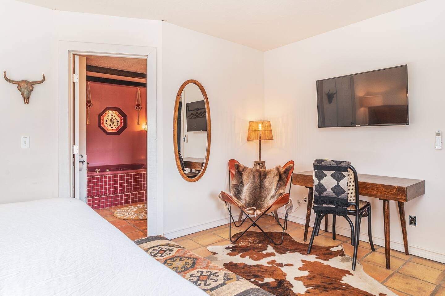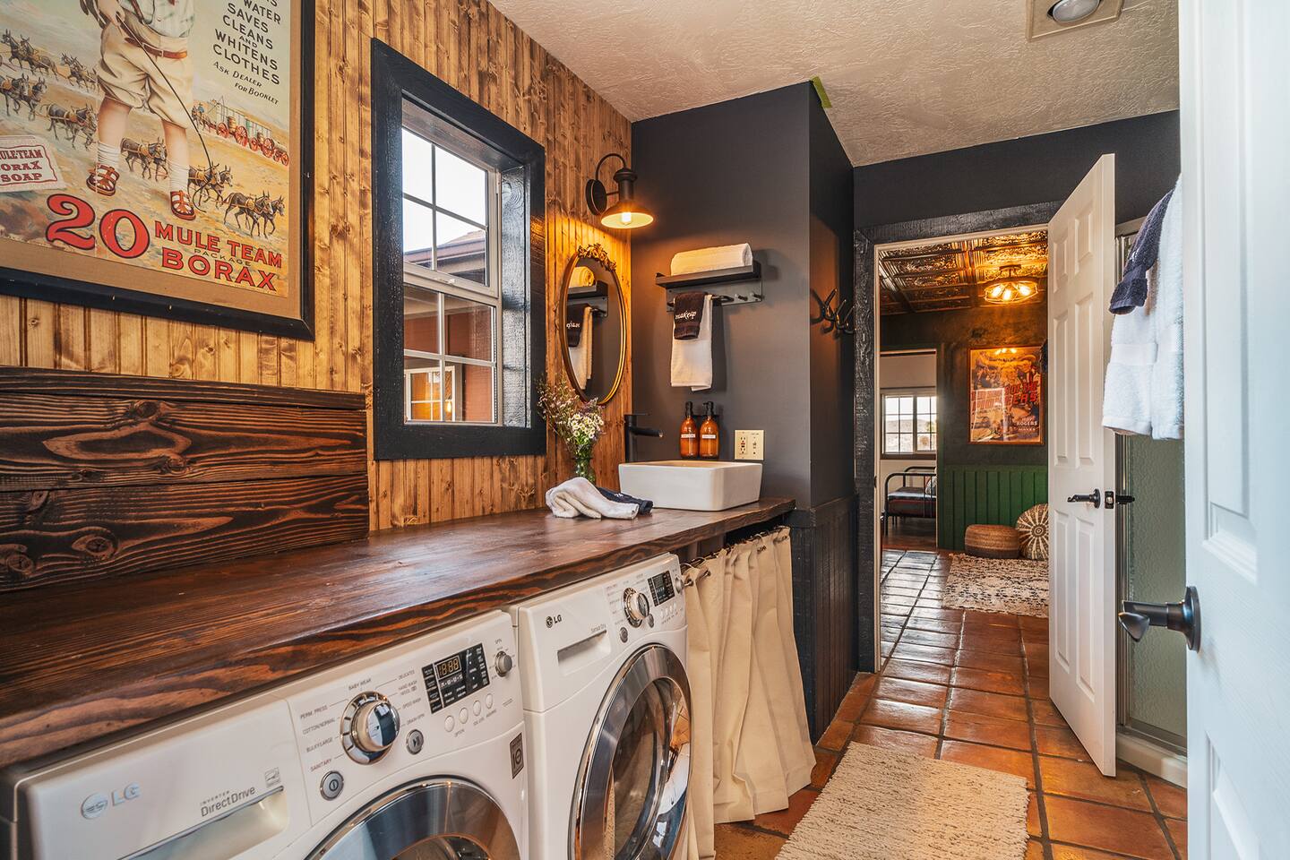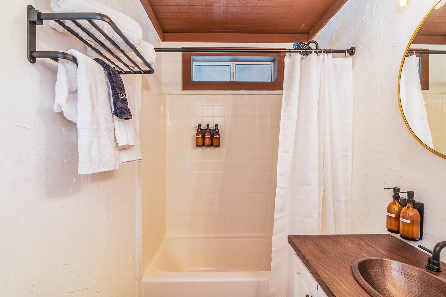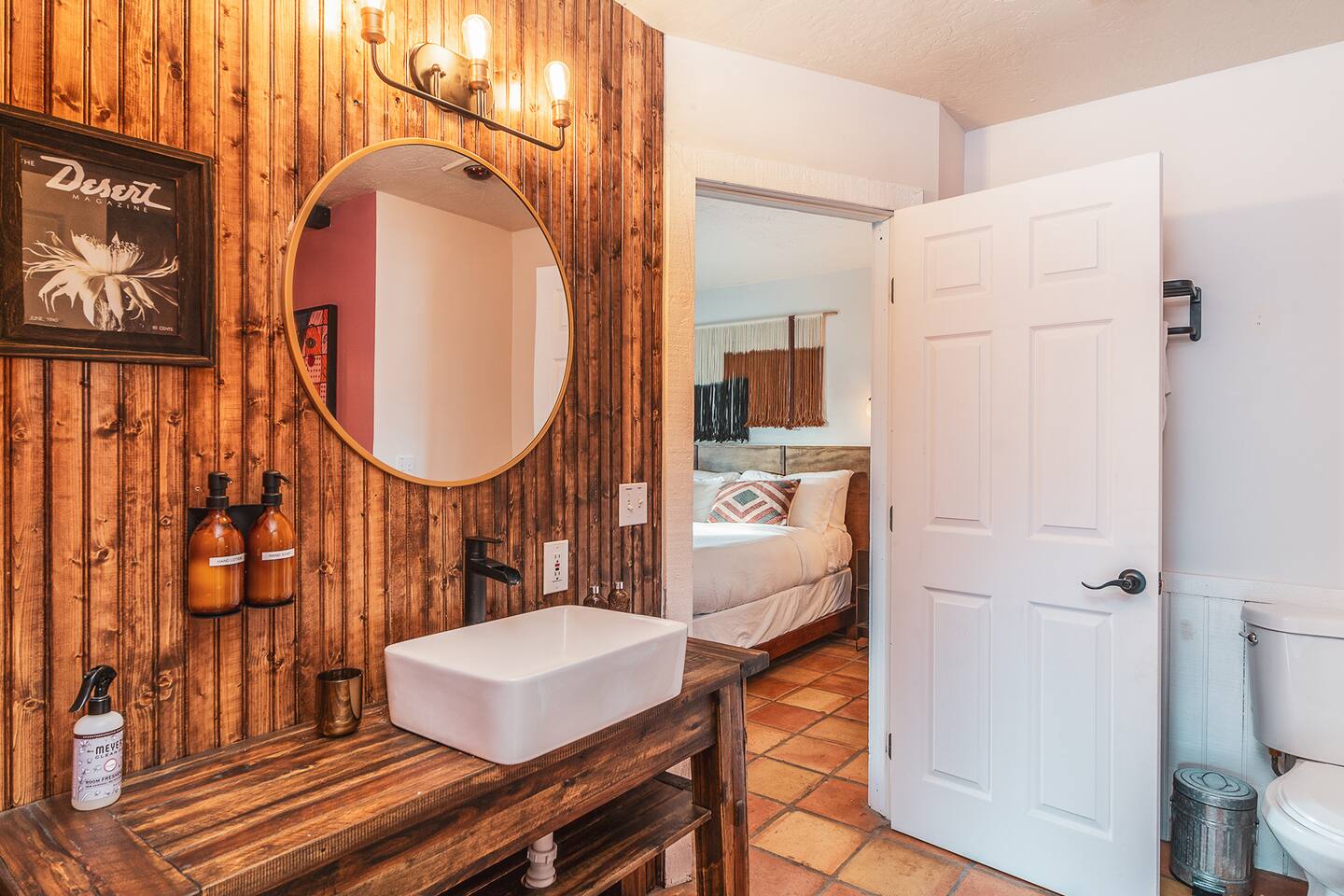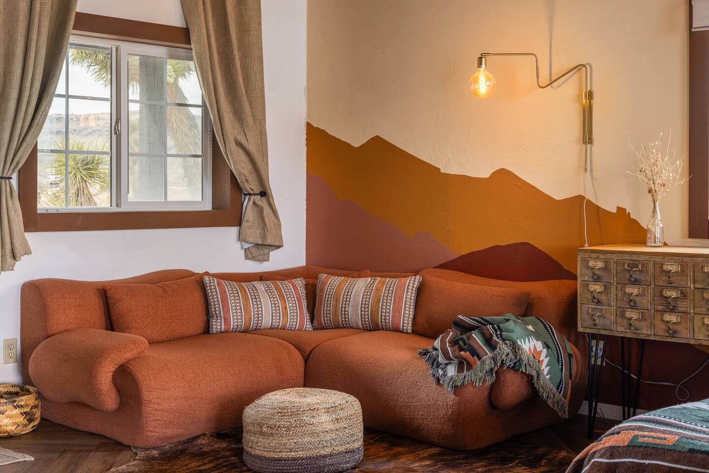 ★ BEDS & BATHS ★ Sleeps 8 across 4 rooms with 4 beds and 3 full bathrooms (2 showers + jacuzzi tub). • Front Bedroom: King bed, Tuft & Needle mattress, tv, two en-suite bathrooms—one with shower and laundry, one with jacuzzi tub. • Master Bedroom: King Casper bed, modular sofa, en-suite bath, and two patios. • Loft: Queen mattress, open space with its own heating/cooling. • Middle bedroom: Queen bed, TV, access to a shared en-suite bathroom. It connects kitchen and master with a privacy door. ★ KITCHEN & DINING ★ Fully stocked kitchen with ceramic glass stove, oven, microwave, dishwasher, drip coffee maker, and DeLonghi pod machine. Dine indoors or outside with views. Propane BBQ included. No range hood—please use the splash guard. ★ LIVING ROOM ★ Airy and open with 16-ft ceilings, two couches, a flatscreen TV, and a cozy lounge nook. Connects to kitchen, front entrance, and patio. ★ THE SALOON ★ Converted horse stable with sectional, bar stools, upright piano, and a desert-facing window bar. Opens to the outdoor deck. ★ OUTDOORS ★ Multiple lounging areas, fenced yard, hammocks, games, hot tub, swing, and a built-in 8-ft cowboy pool (note the stock tank pool is available from Memorial Day - Halloween) ★ PARKING & AMENITIES ★ U-shaped driveway, Tesla charger. 4 mini-splits, pellet stove, and propane fireplace. ★ REMOTE WORK & FAMILY FRIENDLY ★ Fast Wi-Fi, dedicated workstation, pet welcome kit, board games, and outdoor space for kids. ★ FOLLOW US ★ @ houseof.roy | #houseofroy | Tag “House of Roy” Hosted by Viktor & Meghan ★ AIRPORTS ★ PSP – 45 min | LAX & SAN – 2.5 hrs