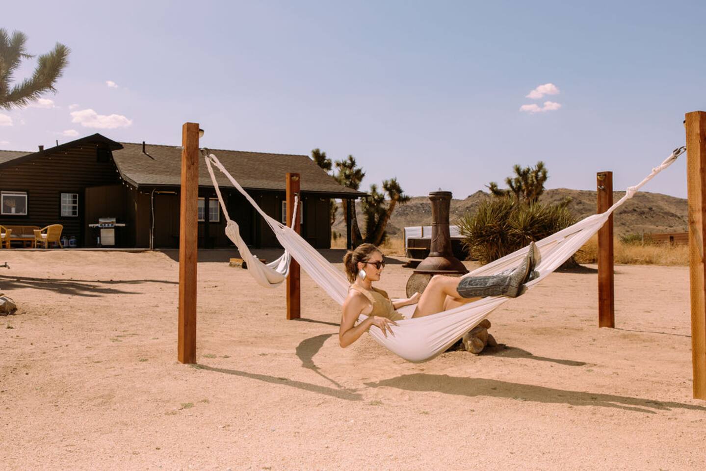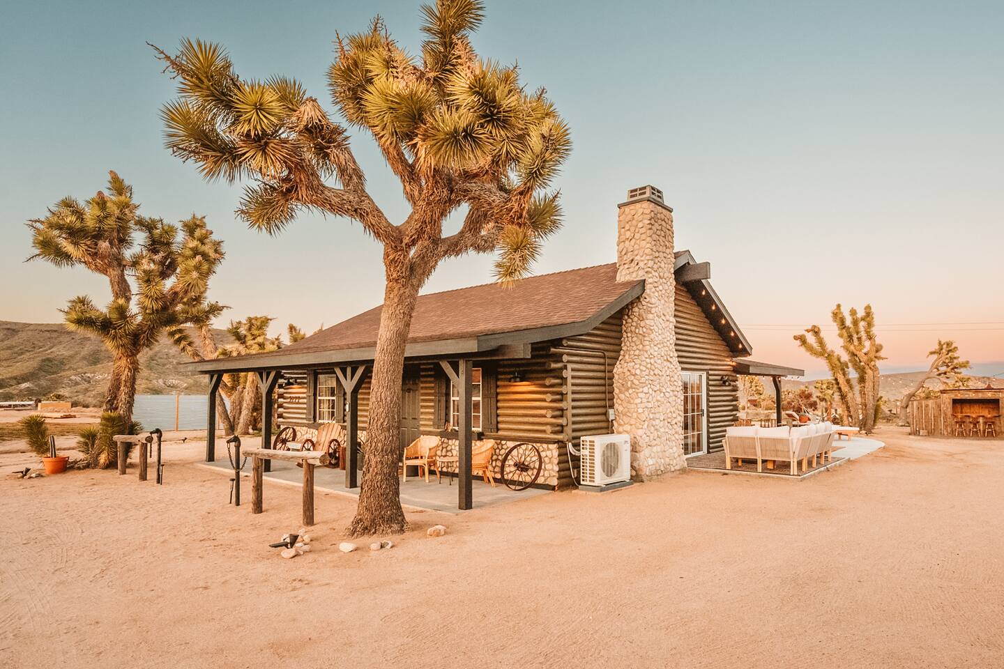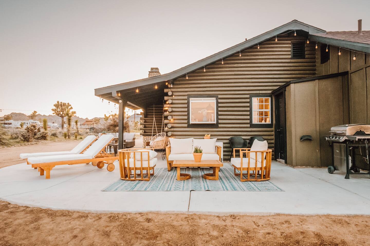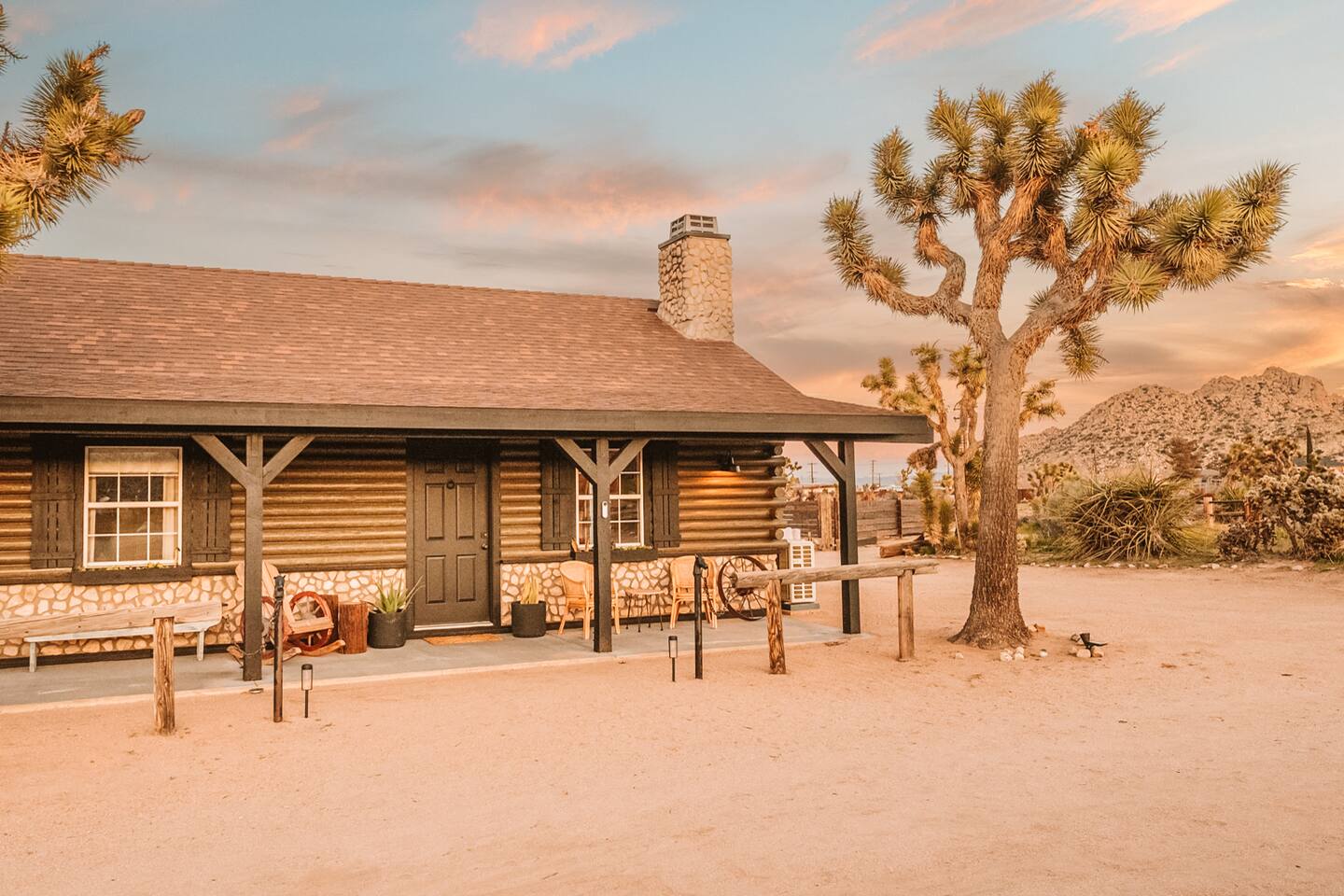 A stylish desert getaway on 4 acres in central Pioneertown, just 5 min walk to Pappy & Harriet's. Perfect for retreats, concert stays, family trips, or Natl Park adventures. ✧ Outdoor Western saloon w/ bar, piano & couch ✧ Hot tub & cowboy pool ✧ 3 bedrooms + 1 sleeping loft (2 king, 2 queen) ✧ 16' ceilings, 1600 sqft (see blueprint) ✧ Larged fenced dog yard ✧ Firepit, 3x patios, BBQ ✧ Tesla charger, fast WiFi ✧ XL indoor bathtub ✧ Hammocks Desert modern luxury meets the spirit of the west.